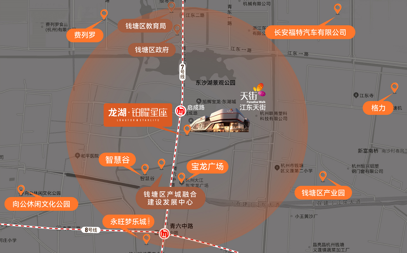 便捷交通:距地铁 7 号线启成路站仅约 200 米,1/7/8/19 号线四轨环绕。江东大道等主干道交汇,畅达武林、钱江新城等城市要地。