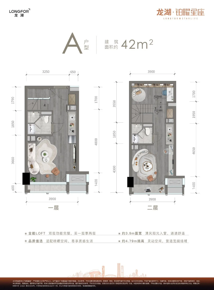 灵动户型:主力建面约 42 - 64㎡,层高约 4.79 米。可打造双钥匙户型,买一层得两层,空间灵活,自住出租皆宜。