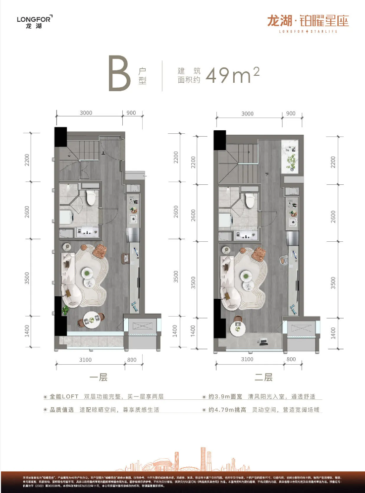 4.79米层高,约3.9米面宽,敞亮通透;双钥匙双层空间功能齐备,加之配套的晾晒区域,尽显大气先进的都会奢居感受。 |