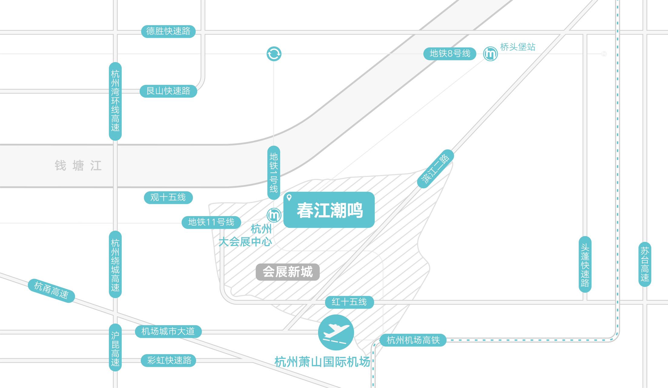 绝佳地段:位处杭州会展新城旁,紧邻钱塘江南岸,直线距江约 20 米。